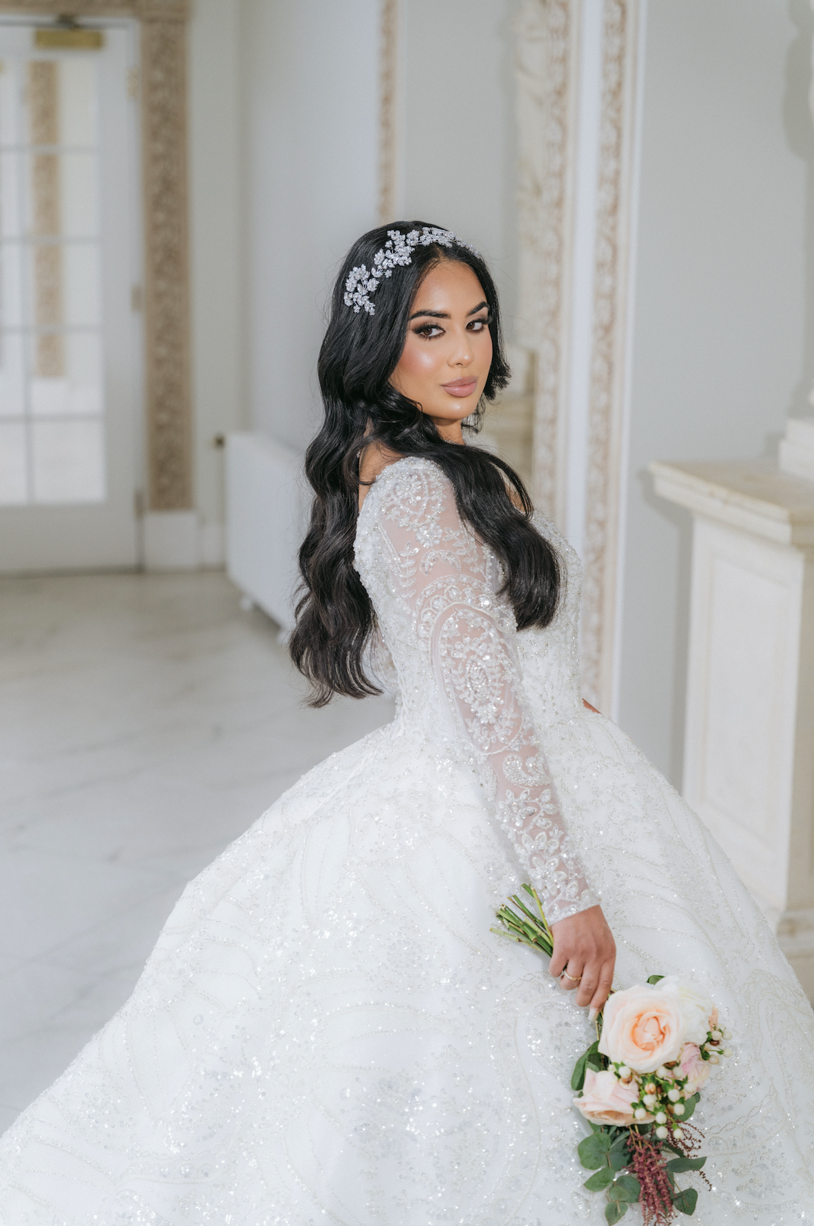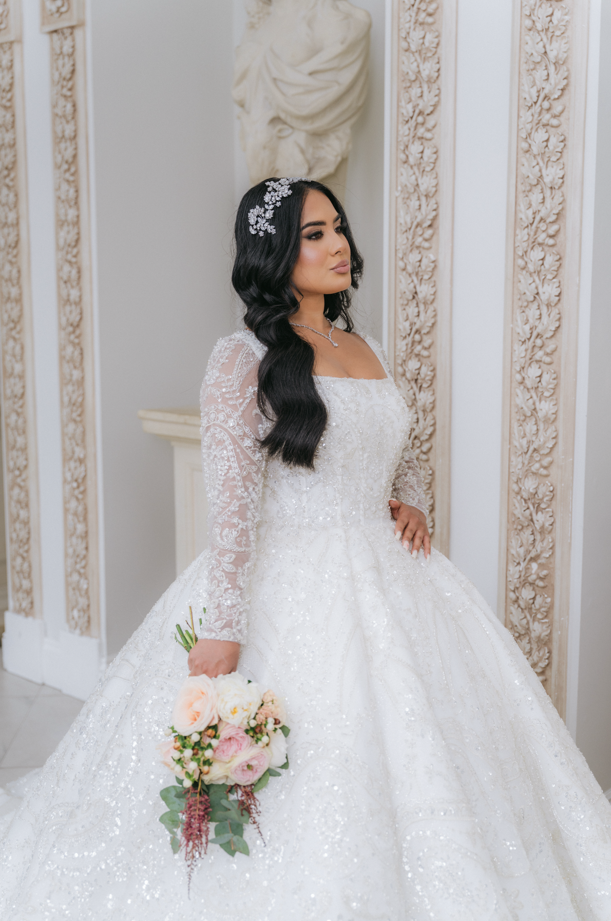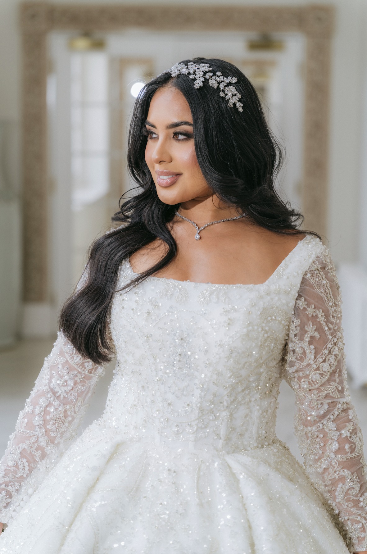 Inspired by the richness of South Asian bridalwear and reimagined through a couture lens, the Noura gown is an exquisite creation that fuses tradition with modern bridal sophistication.