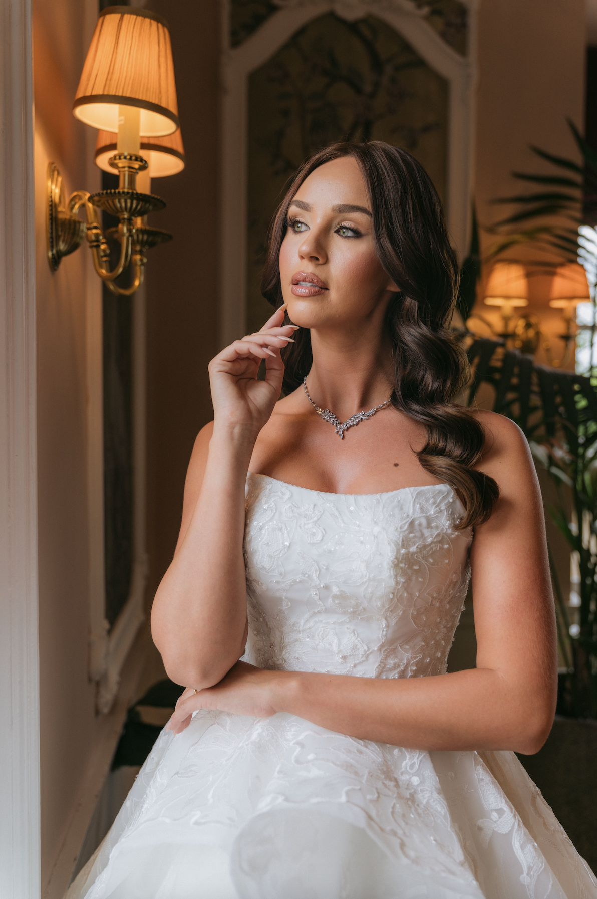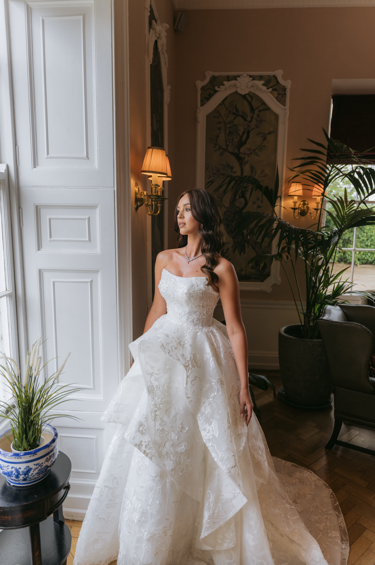 It’s perfect for weddings set in sun-drenched villas, charming gardens, or timeless estates. Whether styled with a statement necklace or worn simply with soft curls, this gown is a timeless ode to blossoming beauty.